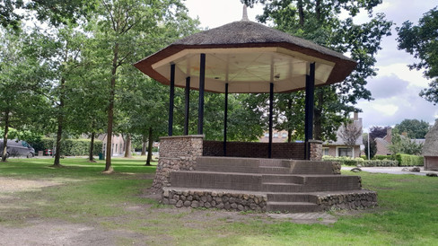 een vrij lelijke muziektent en vervolgens fietsen wij via esdorp Lhee terug naar de grote, stille heide. Dit keer fietsen we over de Oude Hoogeveense Dijk, die geen